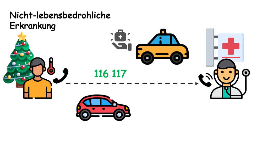 Nicht-lebensbedrohliche Erkrankungen – Ärztlichen Notdienst kontaktieren 116 117